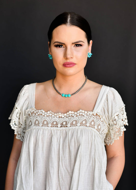 16" Faux Navajo Pearl Necklace With Round Turquoise Beaded A