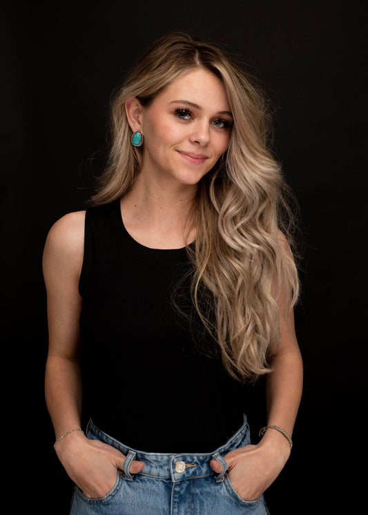 1" Turquoise Post Earring with Burnished Silver Rope Border