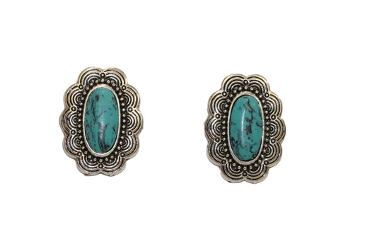 1" Silver Stamped Post Concho Earring w/ Turquoise Accent