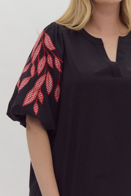 LDC Textured Puff Short Sleeve Notched V Neck Top