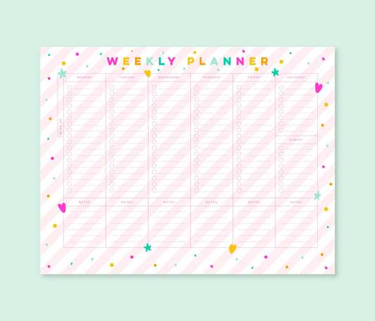 Weekly Planner Notepad | 8.5"x11" | Pink Stripes