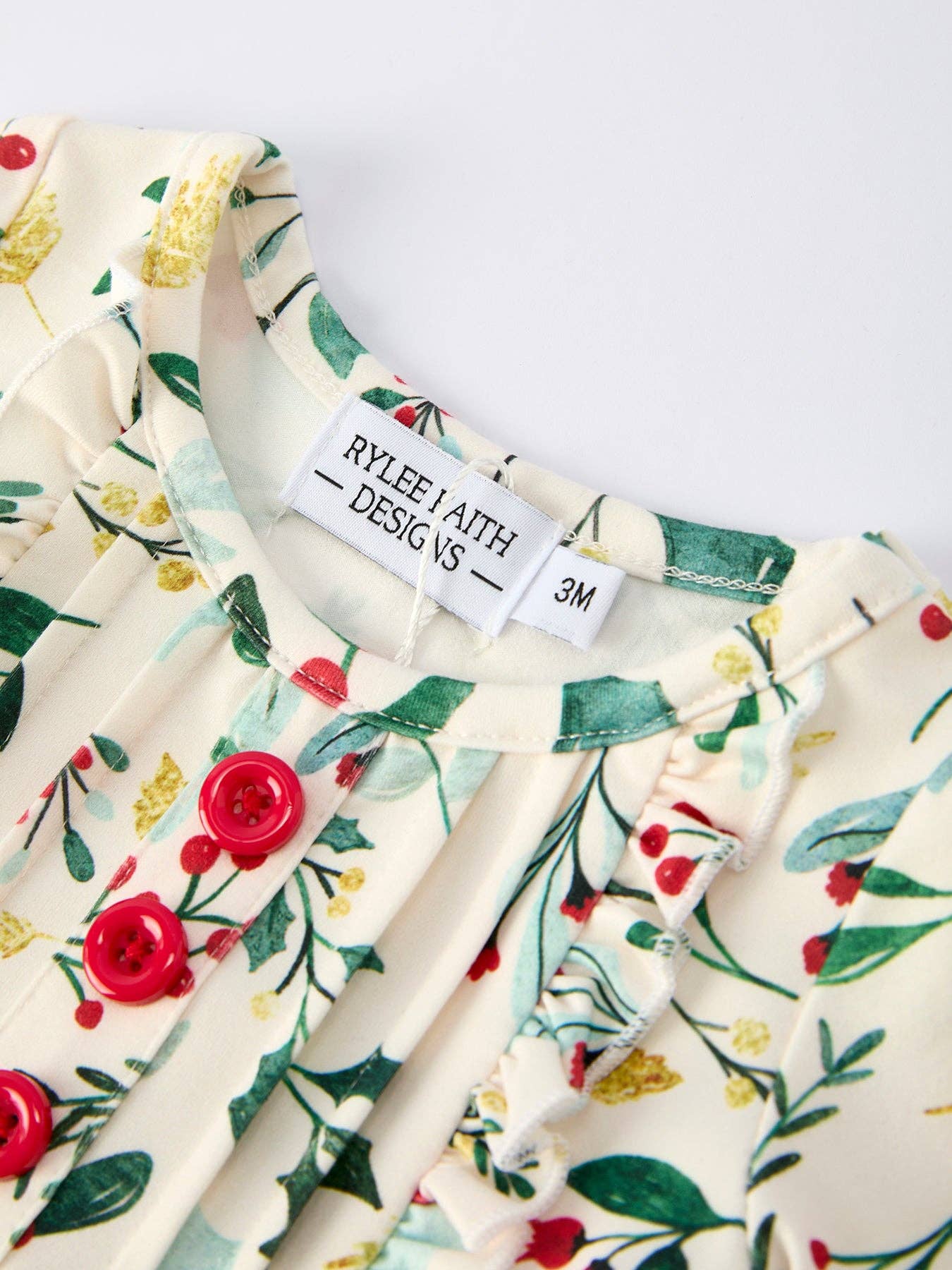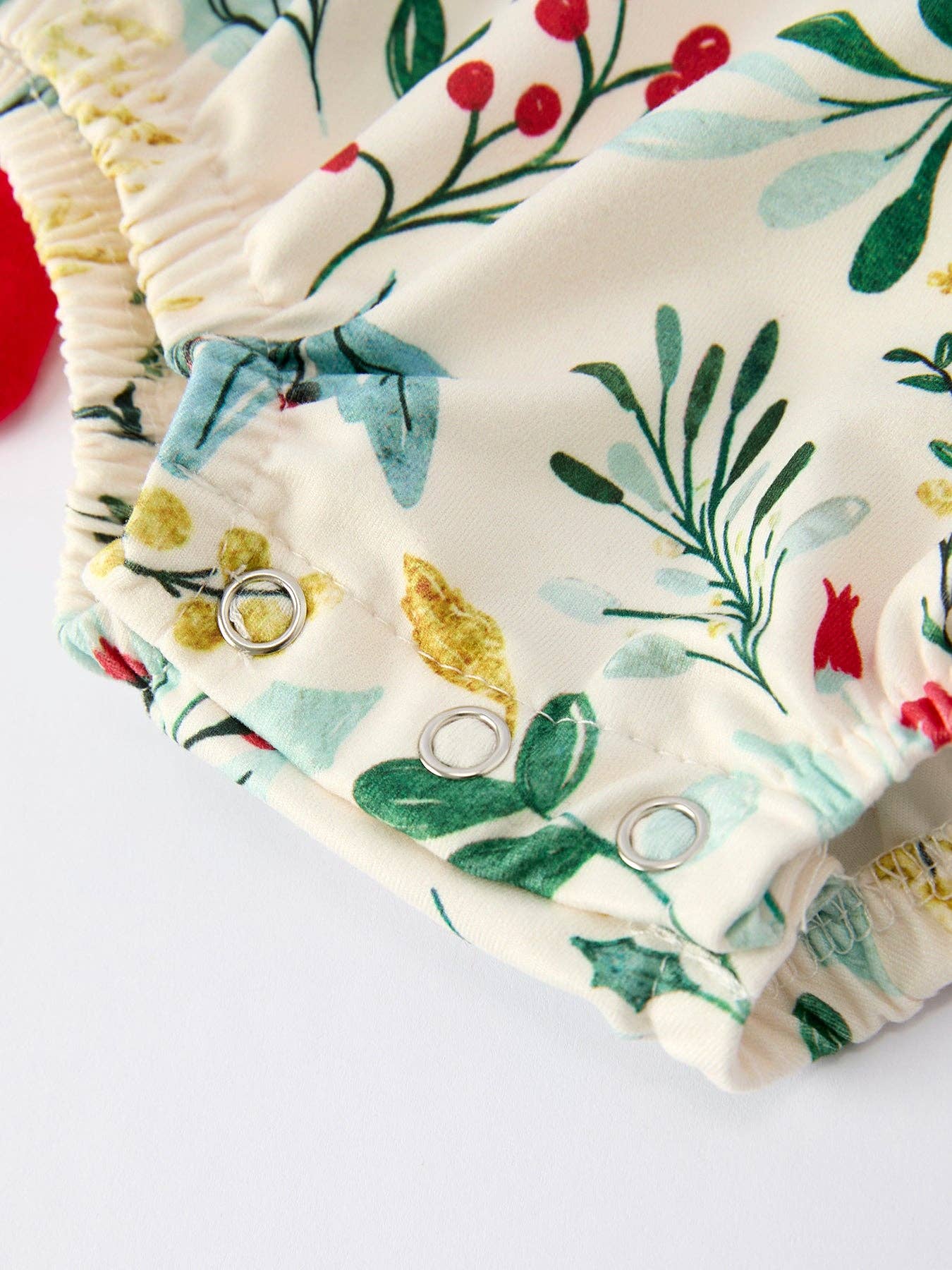 Baby Girls Christmas Romper – Holiday Bow Long Sleeve Outfit