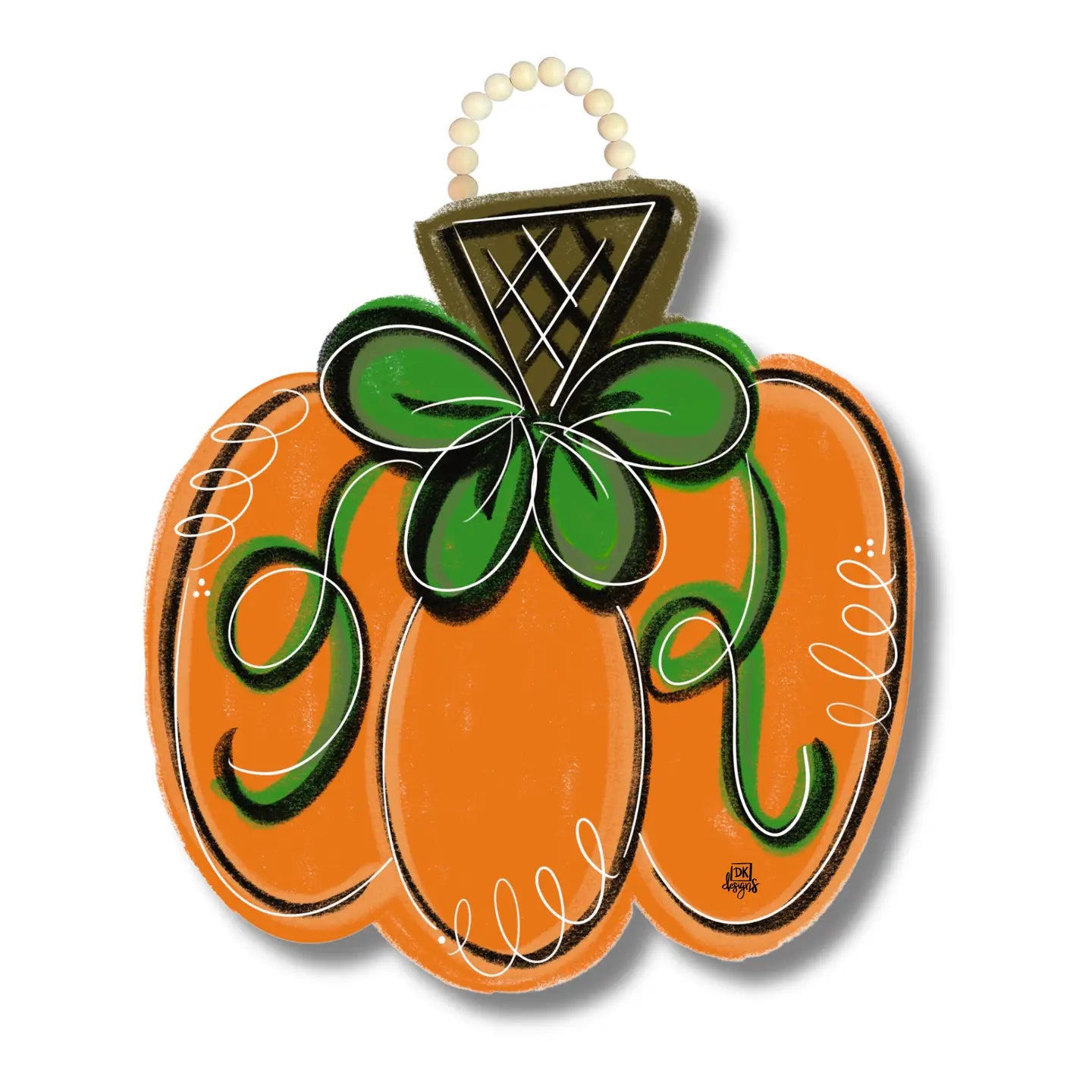 The Classic Pumpkin Door Hanger is the perfect “jewelry” for your door! Show off your style with a beautifully designed door hanger featuring a large classic pumpkin and vines. Every DK Door Hanger is UV-printed on moisture-resistant, high-quality 1/4" board and sealed with two coats of gloss finish for lasting protection. Each design includes a fully wired beaded handle for easy hanging and display.