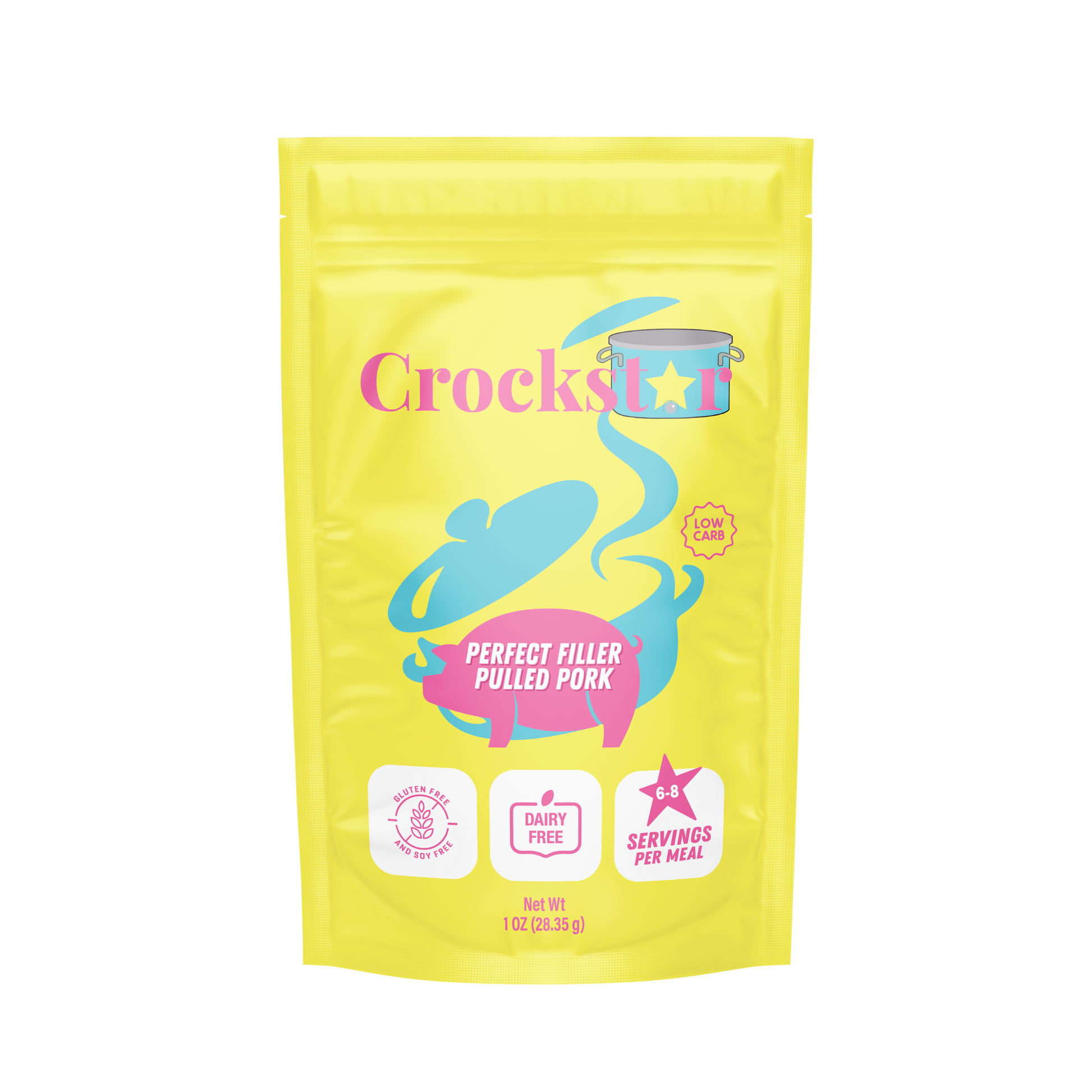Crockstar's Perfect Filler Pulled Pork provides a delicious tender flavorful pork that is perfect served as a sandwich, in a tortilla or even topped on nachos!