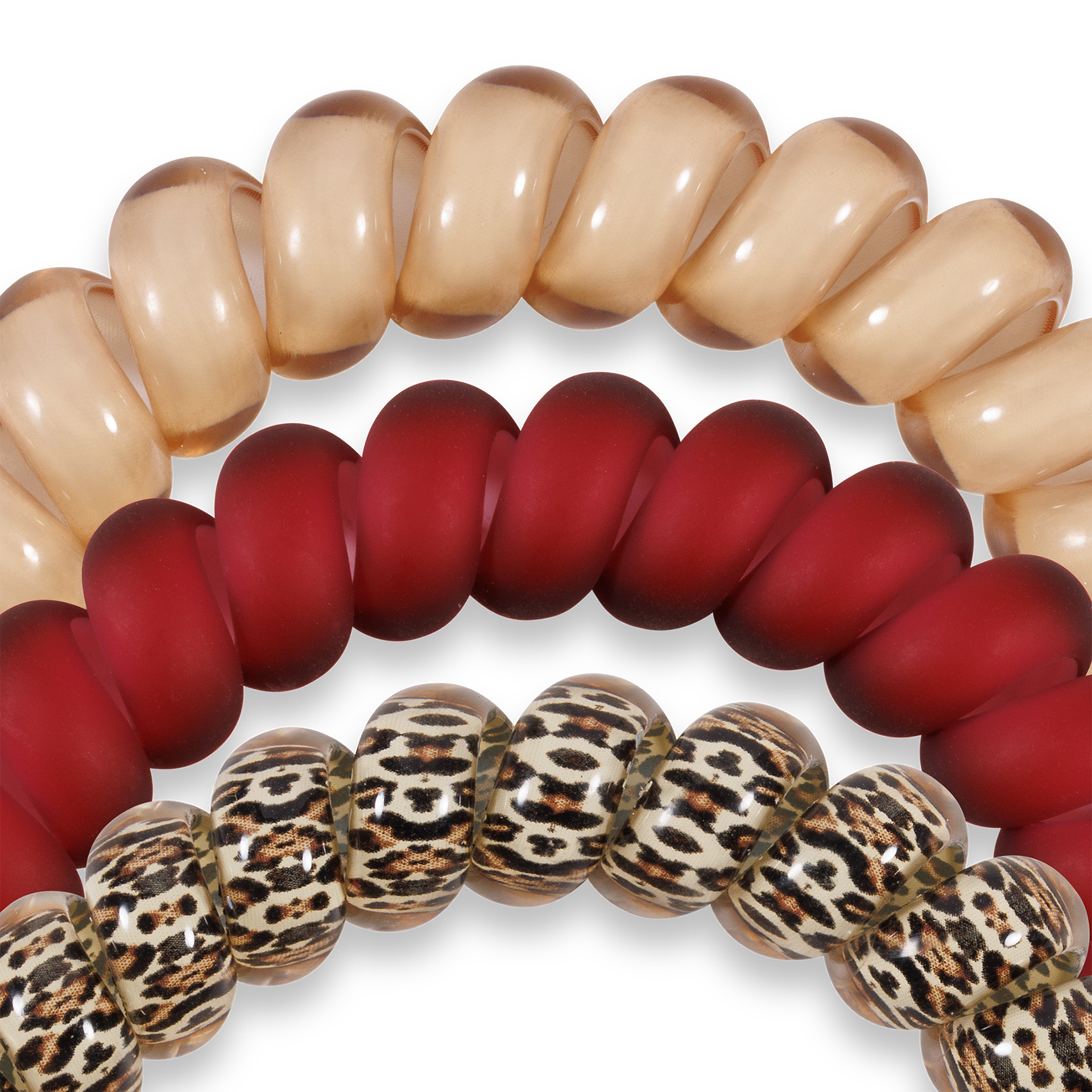Wild SIde Large Hair Ties in Burgundy and Beige offer a strong grip without damage, doubling as a chic wrist accessory when not in use. Your new favorite hair essentials all year round.